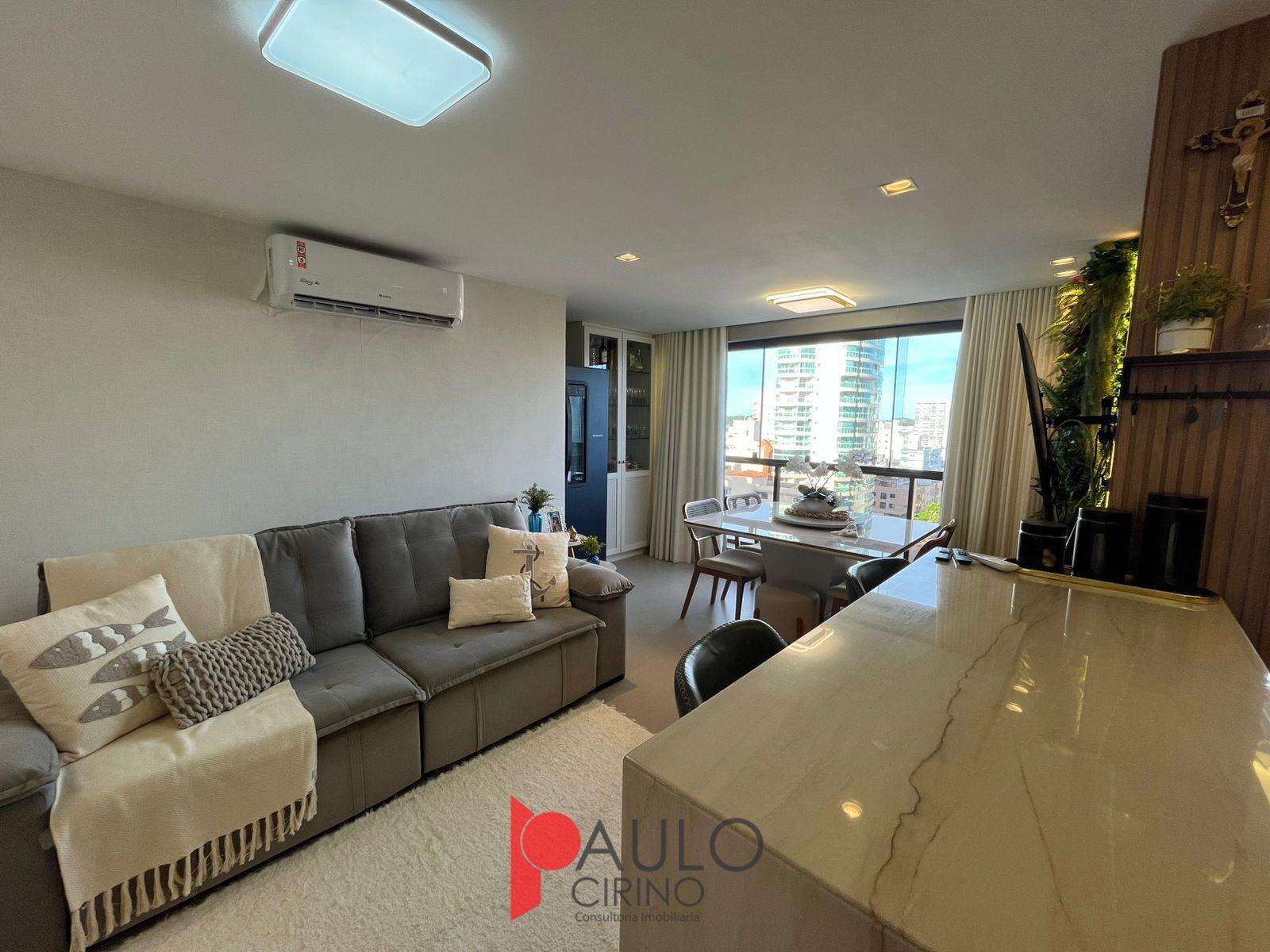 A sala é ampla e bem iluminada, com acesso direto à varanda gourmet, ideal para momentos de lazer, com vista para o mar. A cozinha é planejada e equipada, com bancadas em granito, e os banheiros seguem o mesmo padrão de acabamento de alta qualidade, com pisos em porcelanato e detalhes refinados.