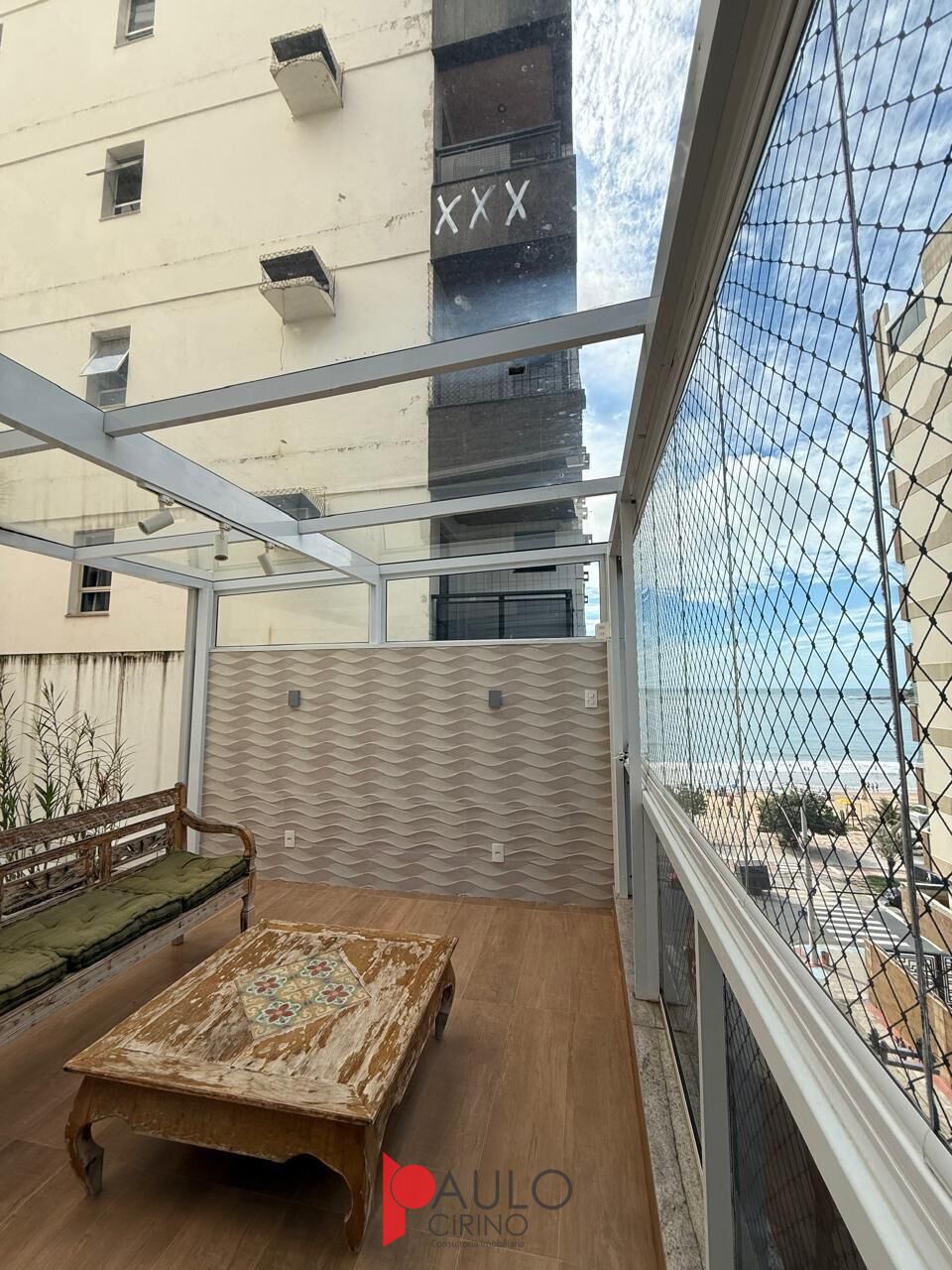 A varanda, um dos grandes diferenciais deste apartamento, é extremamente espaçosa e permite a realização de diversos eventos, tornando-se o ambiente perfeito para reunir família e amigos em momentos especiais. Com espaço de sobra para móveis, plantas e áreas de descanso, a varanda também conta com uma parte descoberta ideal para tomar sol e aproveitar o clima praiano com total privacidade e conforto. Além disso, a vista para o mar é simplesmente magnífica, proporcionando um cenário paradisíaco todos os dias.
