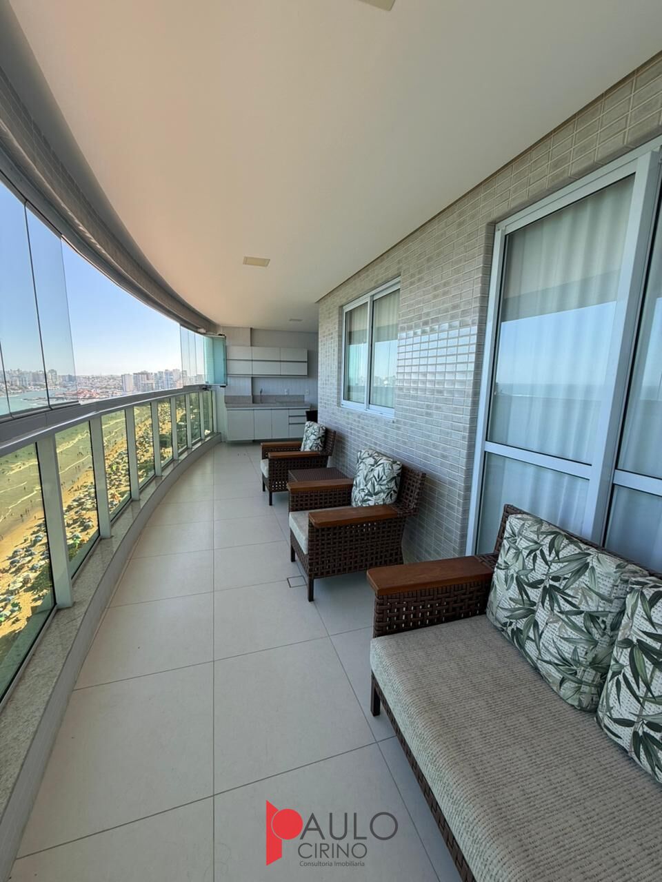 O apartamento conta com 3 quartos, sendo 1 suíte, oferecendo conforto e privacidade para toda a família. A cozinha americana integra-se harmoniosamente à sala, criando um ambiente moderno e funcional, perfeito para receber convidados. A varanda é um convite para momentos únicos, com vista permanente para o mar e excelente ventilação natural. Possui ainda área de serviço bem distribuída.